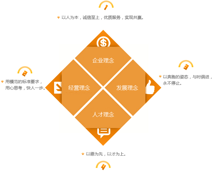 回報(bào)社會(huì)、構(gòu)筑和諧。服務(wù)人民大眾,振興民族經(jīng)濟(jì);質(zhì)量是企業(yè)的生命;顧客是完美的衣食父母;遵守國家法律,弘揚(yáng)法制精神,伸張社會(huì)正義,爭(zhēng)做守法公民;爭(zhēng)創(chuàng)效益,回報(bào)社會(huì);以人為本,以才興企,廣納賢才。