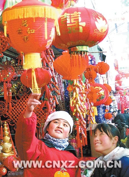 新年即將來臨,象征著喜慶吉祥的節(jié)日飾品在我市各大市場和商場開始熱銷。圖為市民在宣武市場選購節(jié)日飾品。
